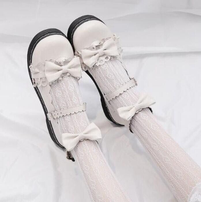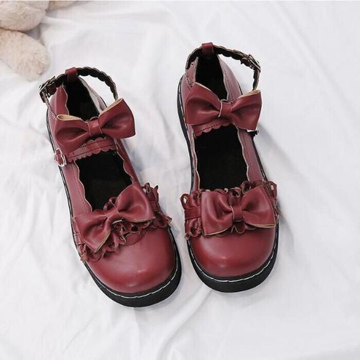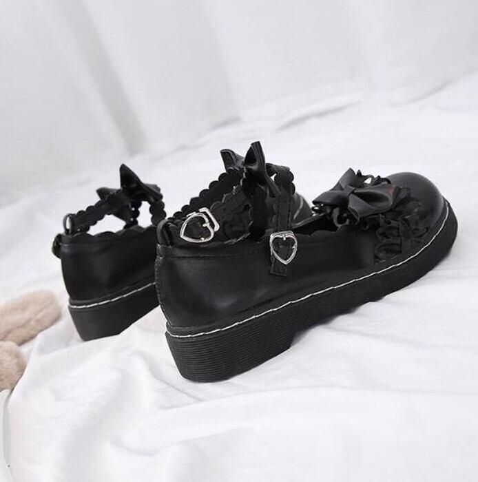 天使と悪魔 ゴシック 甘ロリ ロリータパンプス 夢可愛い トップリボン バックリボン 原宿系 韓国 オルチャン