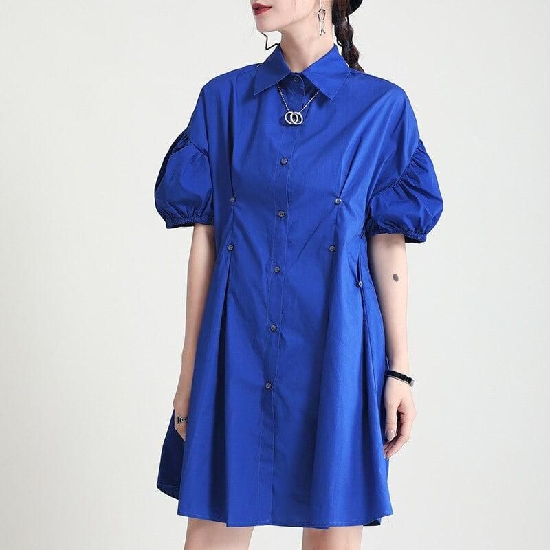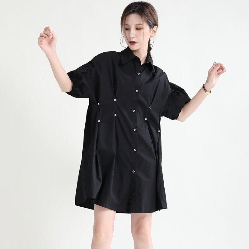 ゆるっと着回せる大きめサイズ、パフスリーブにドロップショルダーがこなれた印象に