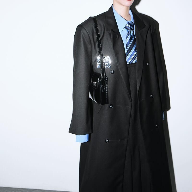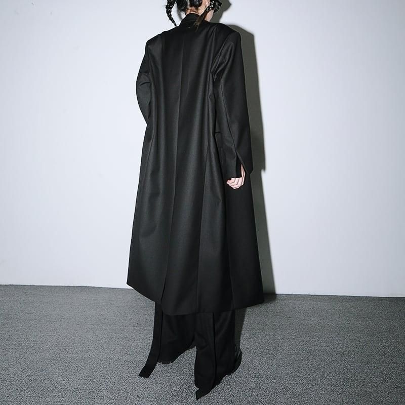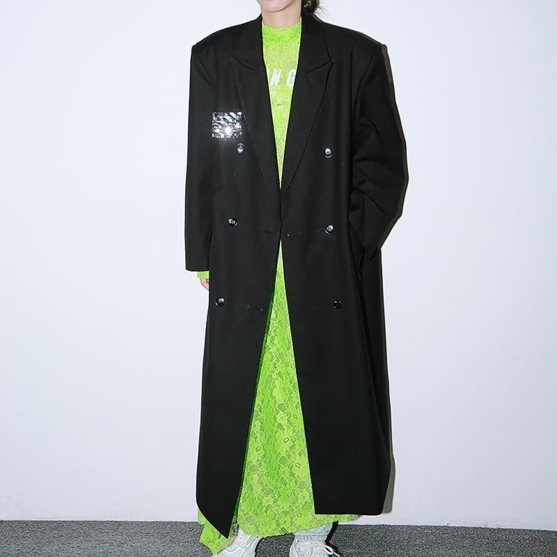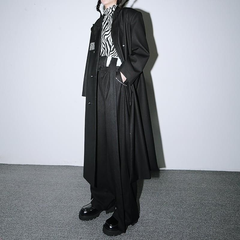 エッジの効いたマニッシュなデザインにビジュアル抜群のメタルブローチが病みかわいい秋冬コートです。